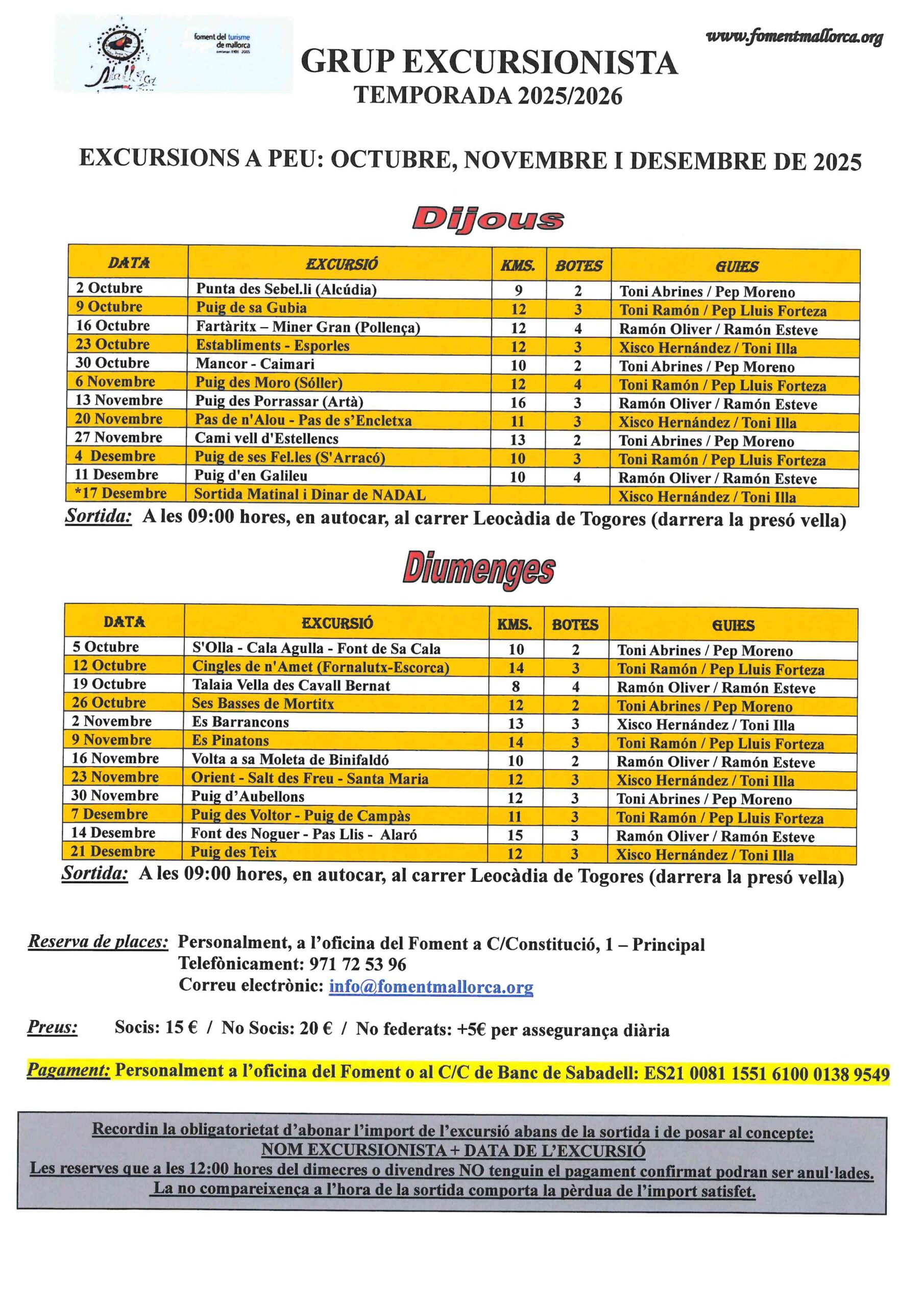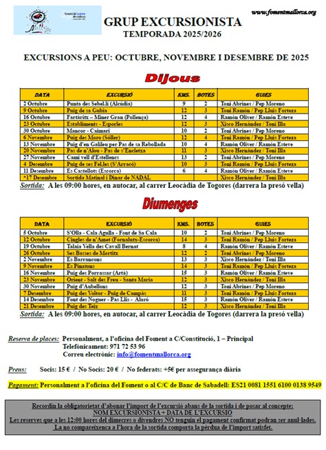 Calendario de excursiones