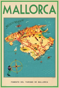 Stick No BillsⓇ Global Poster Gallery en Imprenta Nueva Balear y el Fomento del Turismo de Mallorca han lanzado nuevos carteles vintage a base de imágenes de los años 1930 y 1950, que se incluyen en la colección Mallorca Vintage®. El motivo de esta colección es poner en valor el rico patrimonio natural, cultural y turístico de Mallorca, porque se trata de imágenes de lugares icónicos como Cala Deià y Sa Foradada, pintadas en los años 1930 por el pintor austríaco Erwin Hubert. La tercera imagen es un mapa de Mallorca que se distribuía entre los turistas que llegaban a la isla en la década de los 1950.